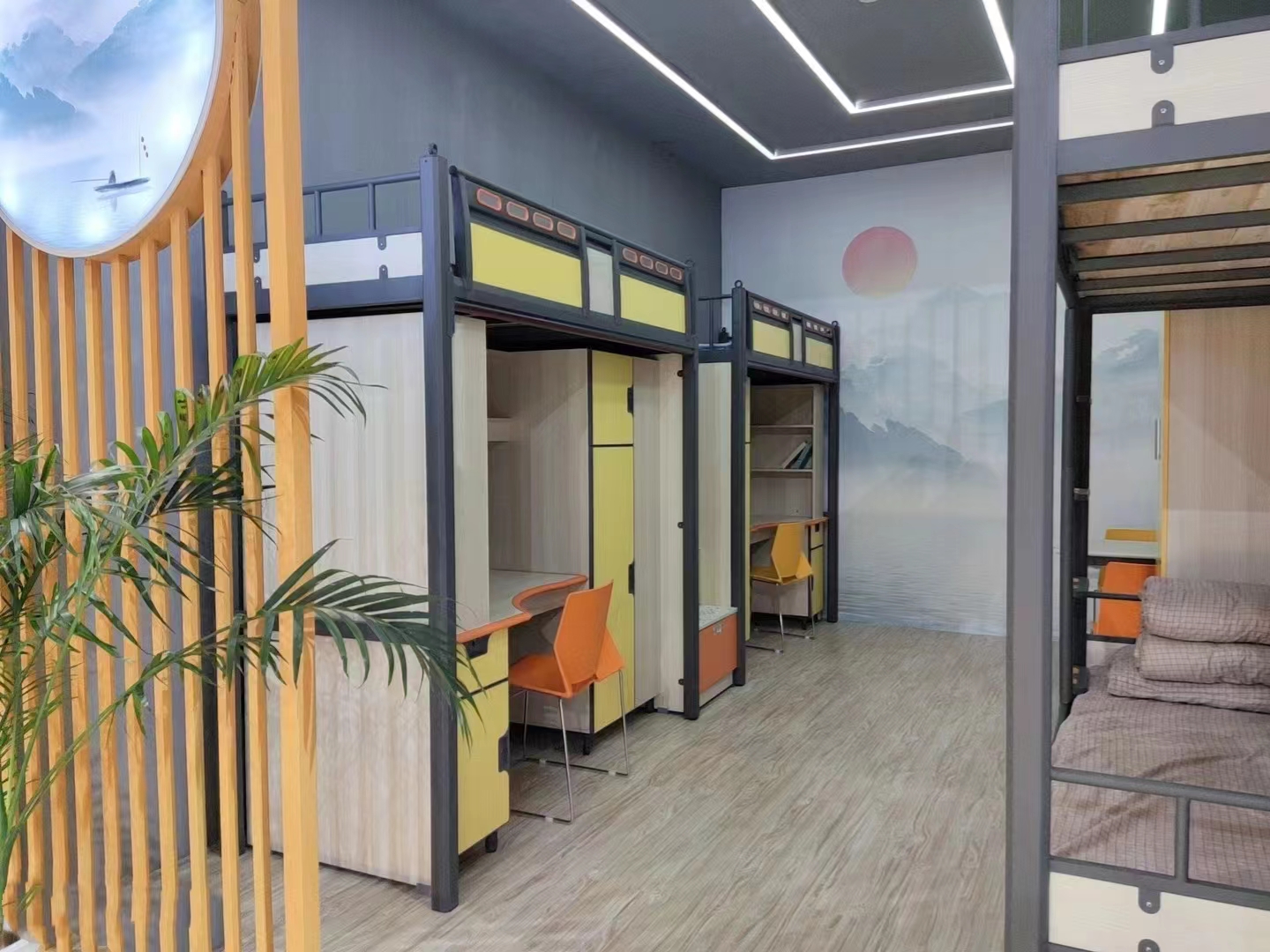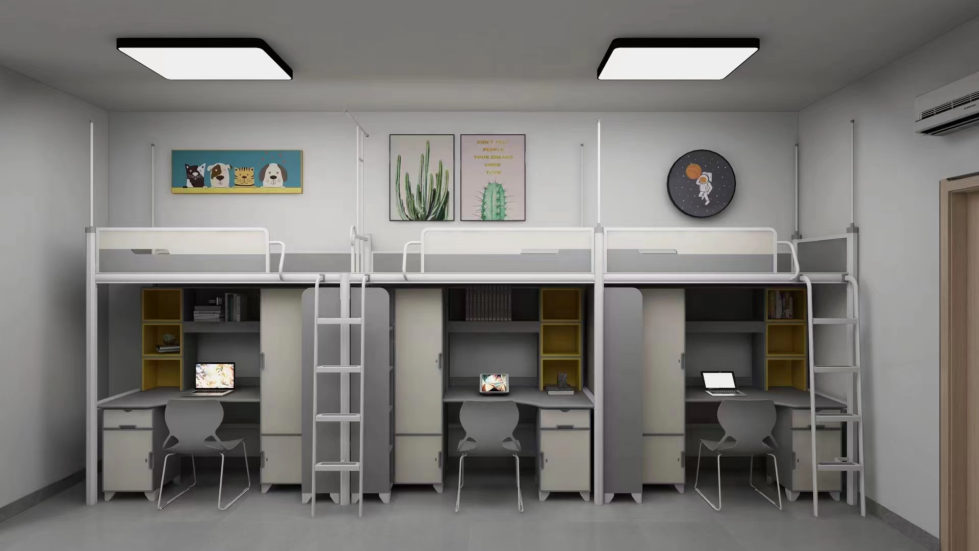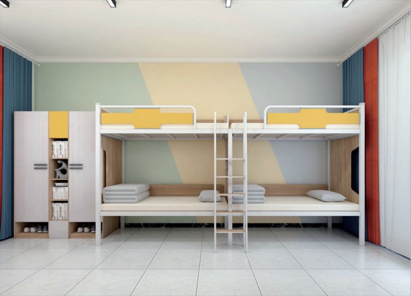 学生公寓床整体采用米白色搭配,凸显了成熟、稳重,又不失活力的气质。在保证基本使用需求的前提下,公寓床还做了很多的创新设计,比如主要考虑了当前大学生注重个人空间,采用了组合公寓床的设计,极大的利用了空间,保障了其安全和个人隐私,增加了储物空间,色调更具青春色彩等设计,让大学生像在“家”一样自在,感到温馨又舒适。